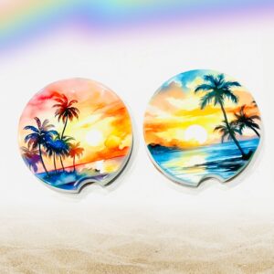 “Tropical Tranquility” Set of Ceramic Car Coasters