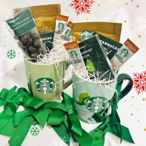 $25.00Warm their heart and brighten their mornings with our Starbucks Coffee Delight Gift Set. A perfect stocking stuffer or holiday gift for coffee enthusiasts, it includes ONE branded coffee mug, a delightful blend of hot cocoa and coffee mix, sweet indulgence with Starbucks chocolate bites or gum, and the added bonus of a gift card for a personalized in-store purchase. Give the gift of coffee joy this holiday season!