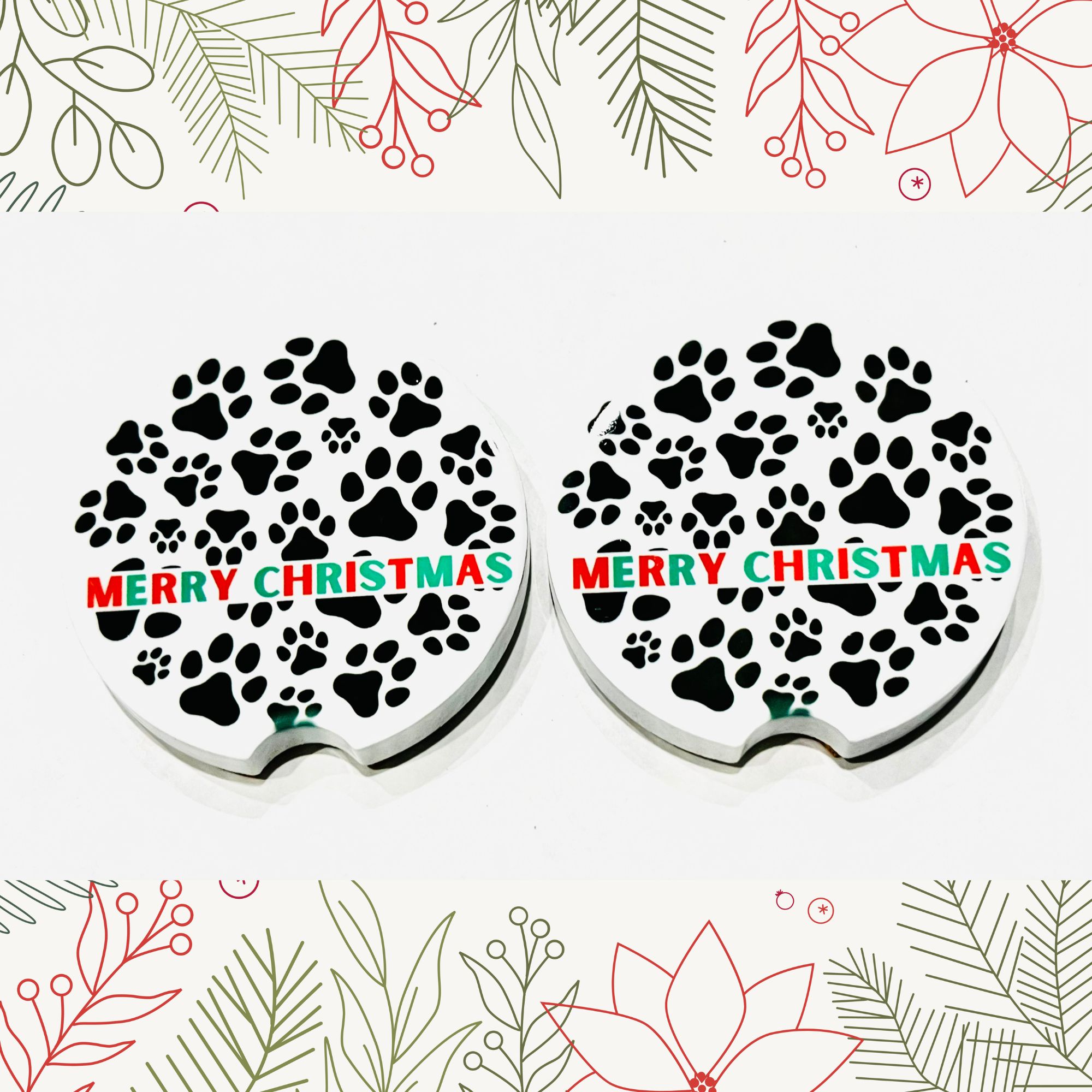 “Pawfect Holiday” Set of Ceramic Car Coasters